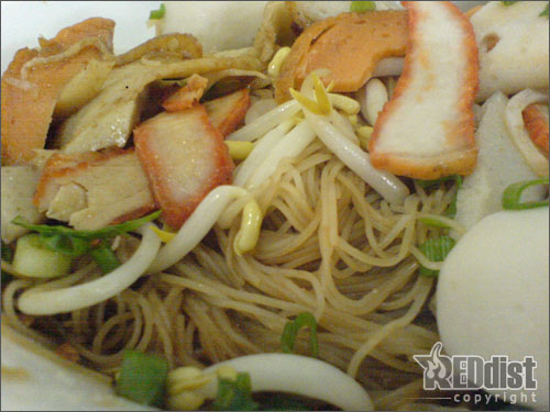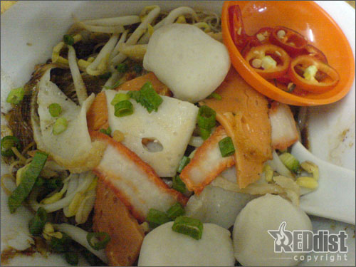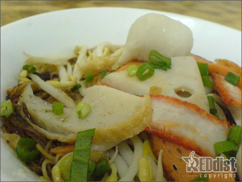 虽然卖了那些多年,但是老板的功夫依然不减。老板的烫面过程控制很好,才能保住面条的鲜嫩,不然面条吸水过多就会失去口感。干捞放的黑酱油分量,味道恰恰好不会过重,也不会太浓。自制的鱼丸及鱼饼也新鲜弹口,没有腥味。 除了以上材料,还可以让顾客加上其他料理,如猪肉丸、炸皮鱼丸、炸腐竹等等。