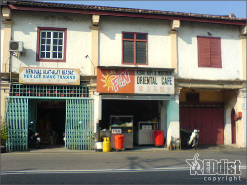 东方茶餐室的店面坐落在Jalan Tun Tan Cheng Lock (靠近鸡场街)的颍川堂对面,其店屋可是一间历史悠久的建筑物。当你踏进店里时,可以观察到整间店屋的形状。虽然面积一点也不宽,但却是非常长,这就是马六甲古屋的其中一个特色。周末的早上,这里是非常多顾客,而且很多都是经常光顾的熟客。